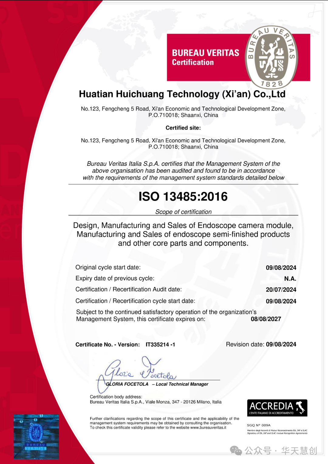 2024年7月20日,华天慧创顺利通过ISO13485:2016医疗器械质量管理体系认证,并于近日正式收到纸质证书。为了助力中国内窥镜行业加速进军海外市场,华天慧创此次体系认证范围涵盖:设计、制造和销售内窥镜模组,以及制造和销售内窥镜半成品及其零部件。该认证的高效审批通过,也标志着华天慧创在内窥镜模组设计研发及制程管控方面达到国际标准。相比市场同业将CDMO视为最重要发展规划,华天慧创此次体系认证范围不包含内窥镜设计方向,华天慧创愿意踏实做好国内外内窥镜整机品牌的CMO生产基地,在双方互信共赢的良好合作氛围中,成长为其最值得信赖的伙伴和助手!